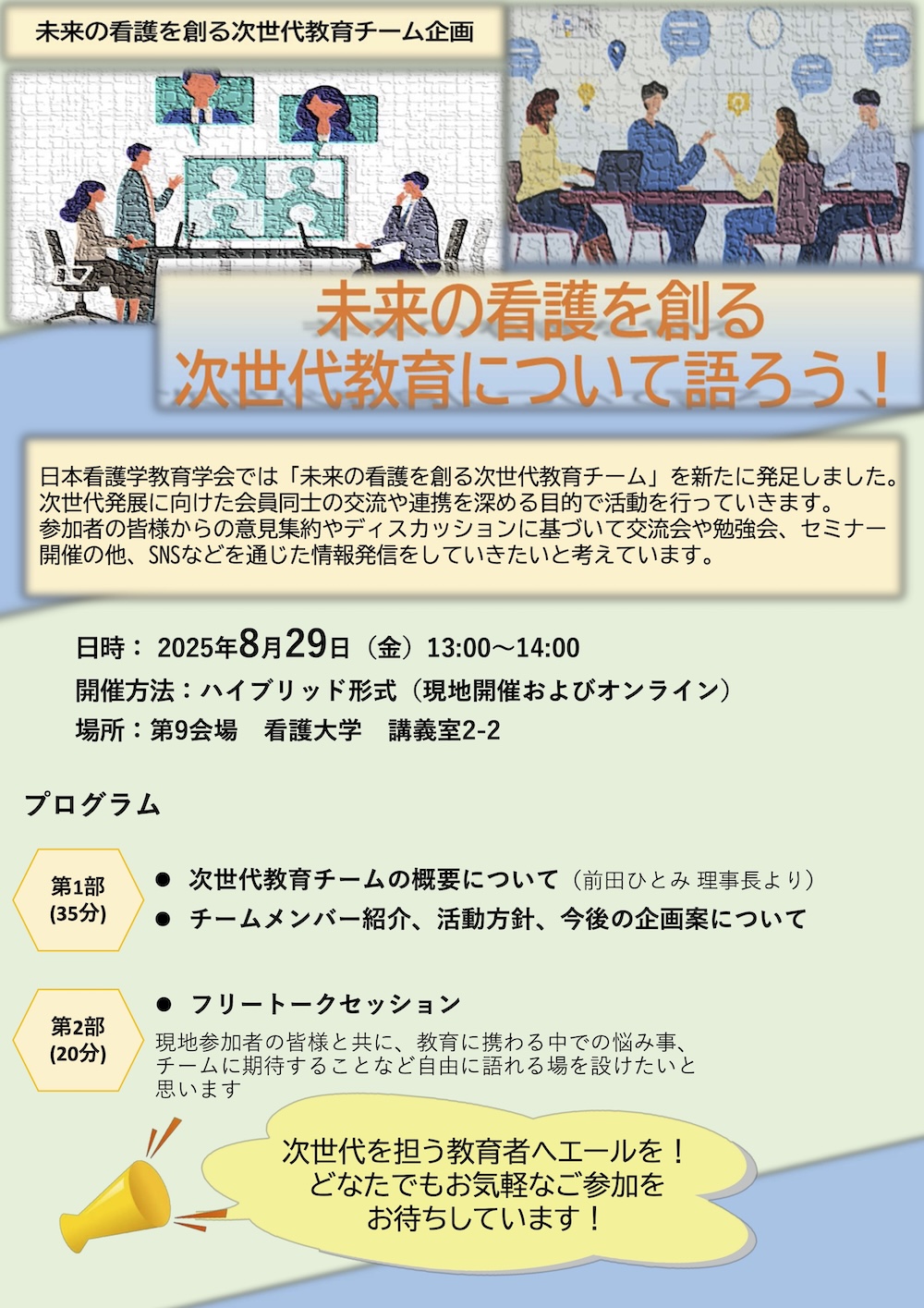 将来構想検討委員会「チームNEXT(未来の看護を創る次世代教育チーム)」では、学会の次世代を担う教育者のつながりをつくることを目的に、交流集会を開催しました。